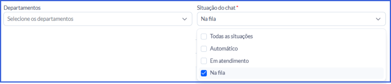 Utilizando a Integração Huggy, é possível escolher o Departamento no qual o Agent irá atuar e a situação do chat