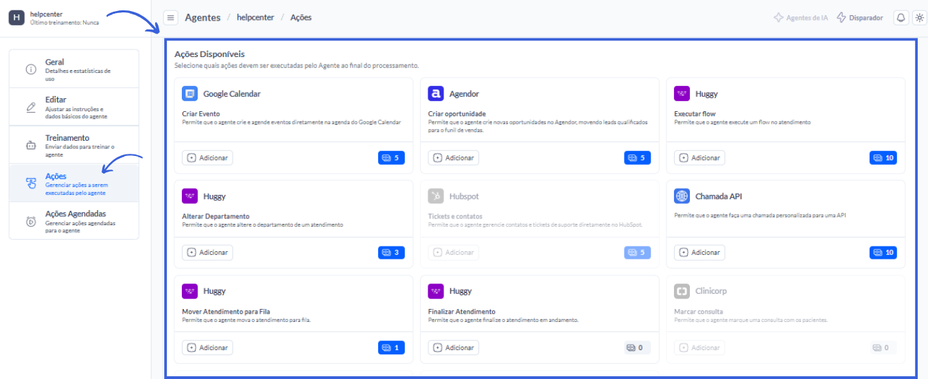 1. Clique em "Adicionar Novo Agente"