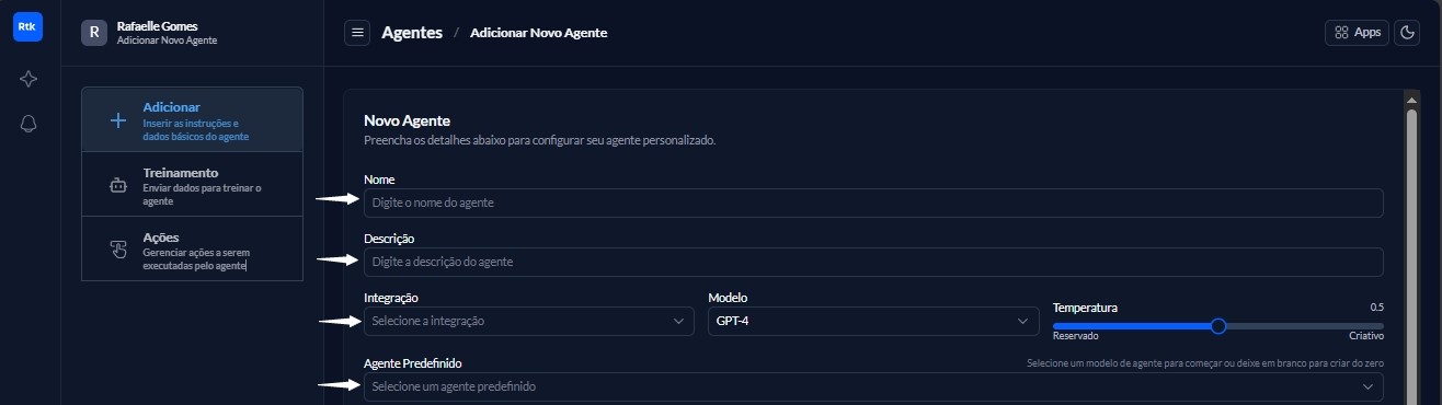 Confira o passo a passo completo para criar seu Agent dentro do painel da Rotik.