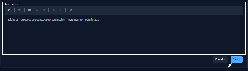 2. Crie as instruções do seu agente