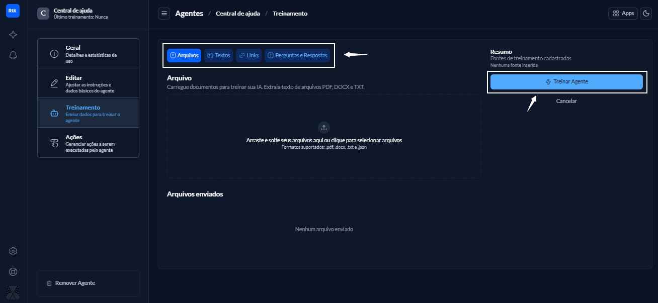 Em seguida, clique em Treinar agente.