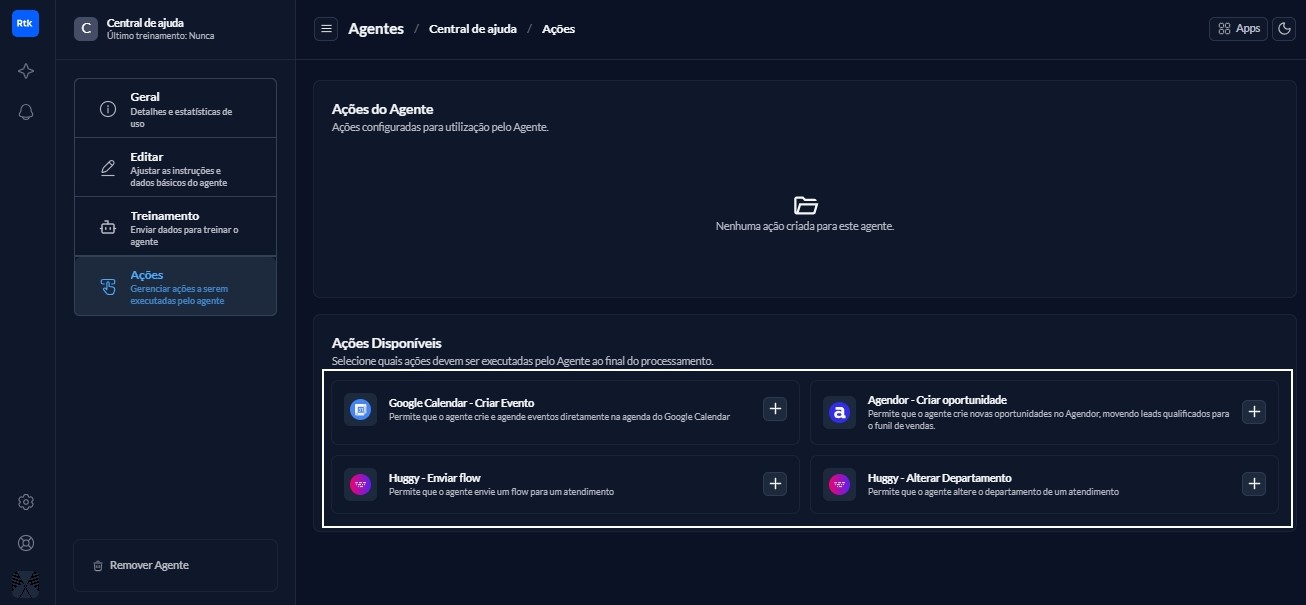 1. Acesse o módulo de criação de agentes